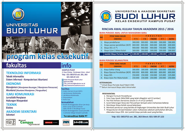 Demikian kami sampaikan tentang Pendaftaran dan Biaya Kuliah Universitas Budi Luhur 2016 semoga informasi tentang Pendaftaran dan Biaya Kuliah Universitas Budi Luhur 2016 ini bermanfaat.